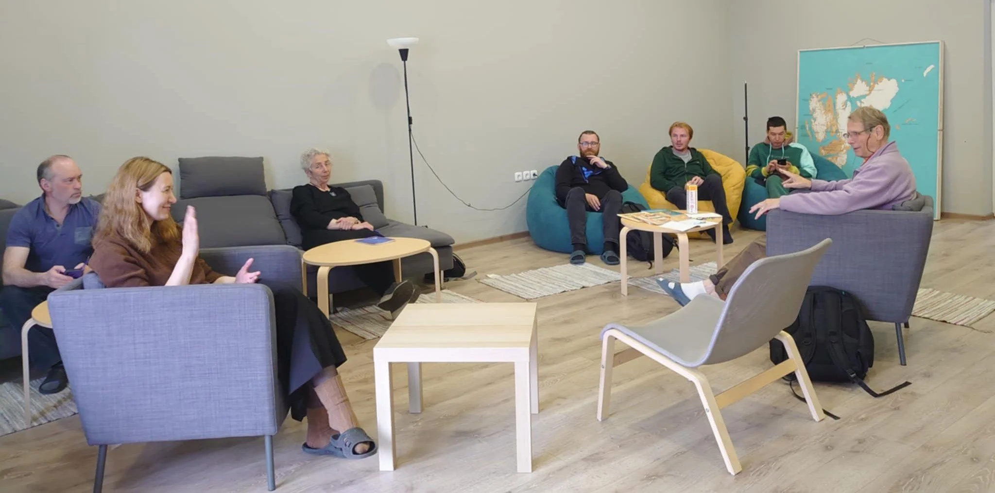 Megumi Kudo-Hubendick og Bjørn Hubendick tilbrakte sommeren og tidlig høst på Svalbard, der de bodde to måneder i Barentsburg og én i Longyearbyen. De ønsket å bidra til undervisning og bygge relasjoner i dette arktiske samfunnet. De tilbød engelskundervisning (bildet t.h.) som et tjenesteprosjekt, holdt et offentlig møte og deltok aktivt i lokalmiljøet. Gjennom hverdagslige samtaler og vennskap delte de også kunnskap om bahá’í-troen på en naturlig måte, og opplevde varme møter med lokalbefolkningen.