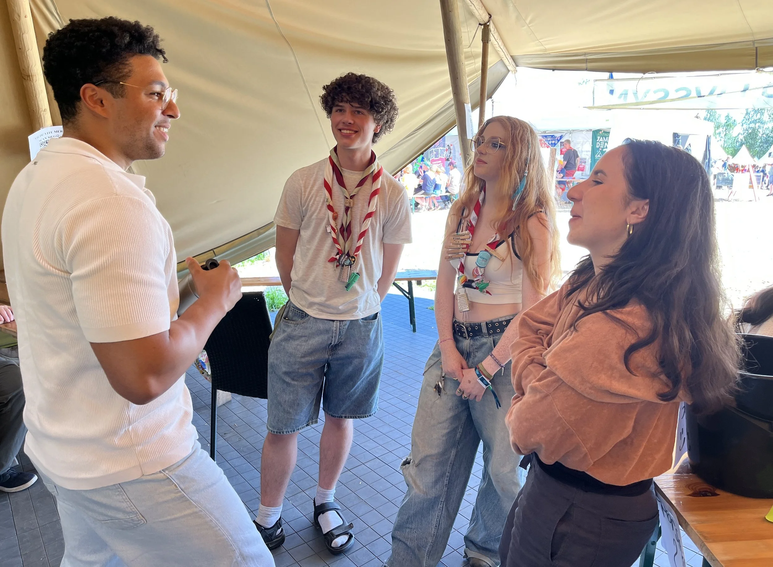Under Speidernes landsleir på Gjøvik var flere bahá’íer til stede, invitert av arrangørene for å betjene «tros- og livssyntorget» en av dagene. Et imponerende antall ungdommer, omkring 12 000, deltok på landsleiren. Lavvoen på torget ble et rom for samtale, refleksjon og utforskning om bahá’í-troen. Flere sa de syntes at bahá’í-troen er veldig relevant for dagens samfunn og spennende å lære om.
